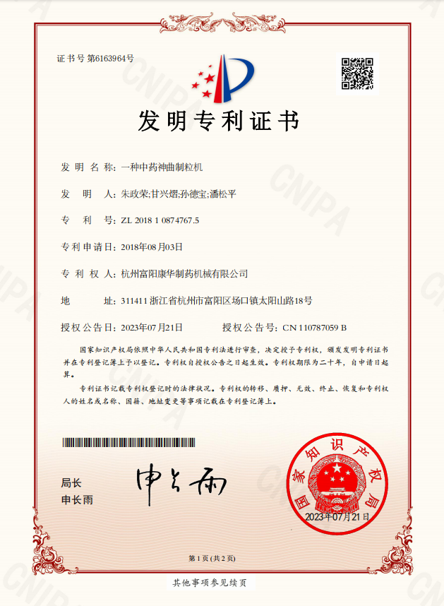 杭州富陽康華制藥機械有限公司(初創(chuàng)于2001年, 2004年后更名為:杭州富陽康華機械設備廠),是集產(chǎn)科研一體化的中藥材前處理及飲片加工設備制造企業(yè)。公司秉承以產(chǎn)品質(zhì)量為基礎、客戶服務為向?qū)А⒖蒲袆?chuàng)新為后勁的宗旨,在企業(yè)高速發(fā)展的同時,著力打造新產(chǎn)品研發(fā)中心,以開發(fā)現(xiàn)代、新穎設備為重任,確保產(chǎn)品立于行業(yè)先進行列,企業(yè)已擁有70余項專利...
